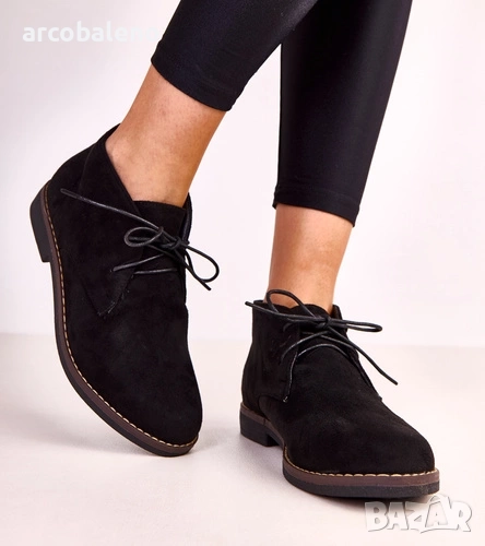 Черни дамски равни боти до глезена от Lauda