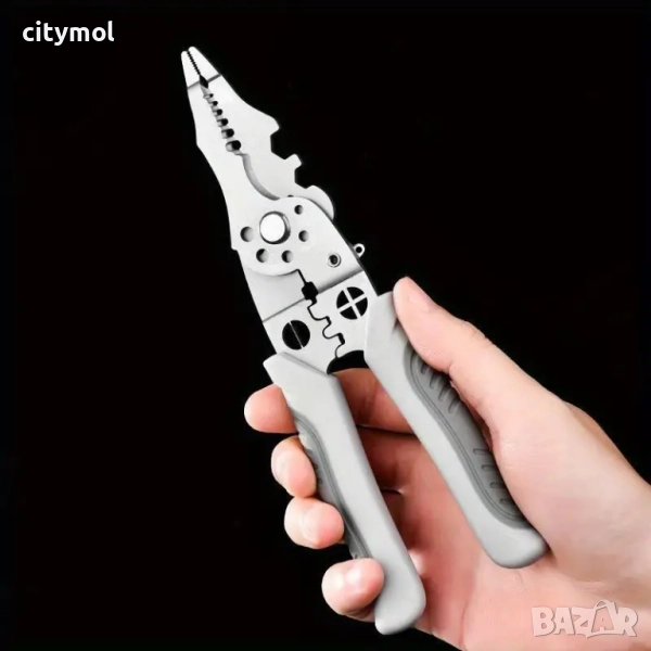 Практичният инструмент за оголване на проводници изпълнява различни функции за затягане, оголване, рязане на проводници, срязване, чупене на пирони, цепене на проводници, развиване, опаковане на проводници и пресоване на проводници, без да е необходима честа смяна на инструменти, което подобрява ефективността на работа.