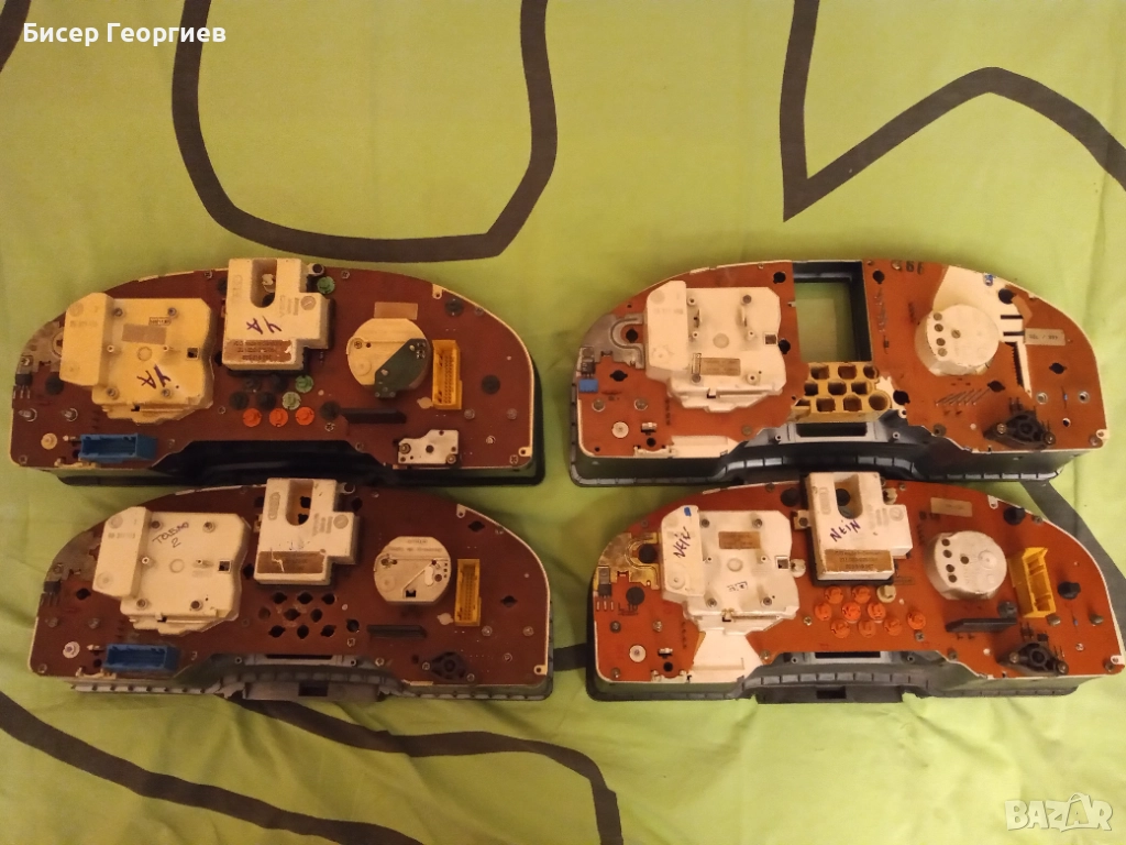 - 4 броя табла за Ауди 80 - 2 с оборотомер и 2 с часовник . Едното от тях е напълно изправно , на другото трябва да му се преспоят спойките на единия конектор - то също е изправно , а другите са за части . Искам да ви обърна внимание , че таблата са един модел и частите са взаимозаменяеми - т.е. можете да си сглобите табло по ваш вкус ( например - с оборотомер или с часовник ) ! Не са нужни майстори - просто изваждаш модул от едното и го слагаш на другото . Всички части по таблата са изправни ( тези , които са имали проблем са изхвърлени ) . Цената за всичките е 130 лв. Приемам лек коментар на цената , въпреки , че е много ниска .