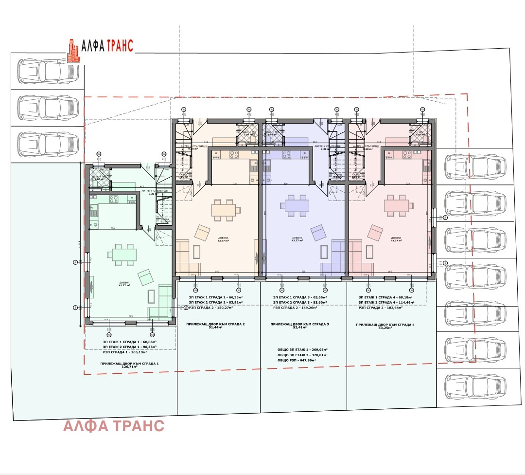- Къща-1-РЗП-165.69 кв.м.,3 парко места ,прилежащ двор-126.71 м2.,Цена-225 000 евро .