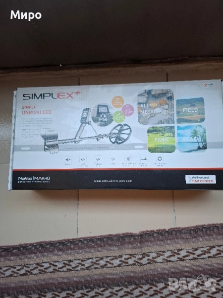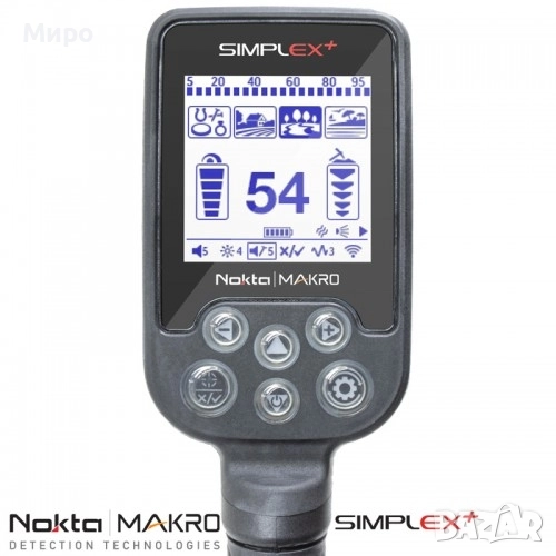 Напълно потопяем в вода в оригиналната си кутия .Nokta Makro Simplex+ е водоустойчив (до 3 м), многофункционален металотърсач, предназначен както за начинаещи, така и за напреднали търсачи. Той предлага четири режима на търсене (всички метали, поле, парк, плаж), автоматичен или ръчен баланс на грунда, вибрационен режим, подсветка на дисплея и клавиатурата, както и LED фенерче. Устройството е леко, с регулируем и сгъваем