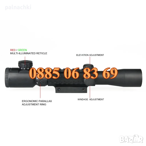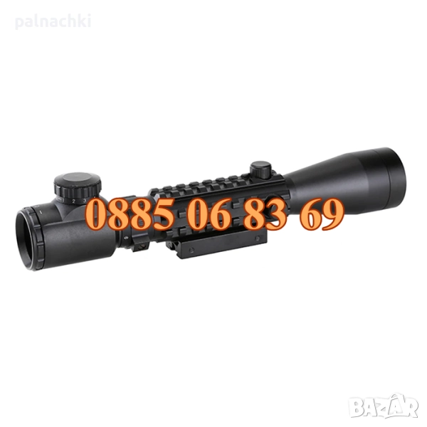 ОПТИКА ЗА ПРИКРЕПВАНЕ КЪМ ПУШКИ С РЕГУЛИРУЕМО УВЕЛИЧЕНИЕ от 3 до 9. Оптически прицел с двуцветна подсветка за ловна стрелба и вградена просветка за работа при намалена видимост в два цвята, червен и зелен с по пет степени за регулиране на интензитета за всеки цвят. Оптиката е чудесна принадлежност при лов. Отлично качество, рационален дизайн и елегантен външен вид. Наблюдавате и фокусирате обекти намиращи се на голямо разстояние.