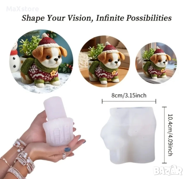 3D Коледно куче кученце Силиконов молд форма за кашпа → Обява 52103569
