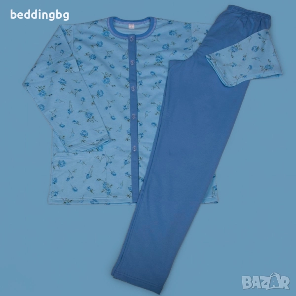 Удобна и Топла Дамска Пижама (100% Памук, Лека Вата) с Копчета - БГ Производство! Размери M-3XL