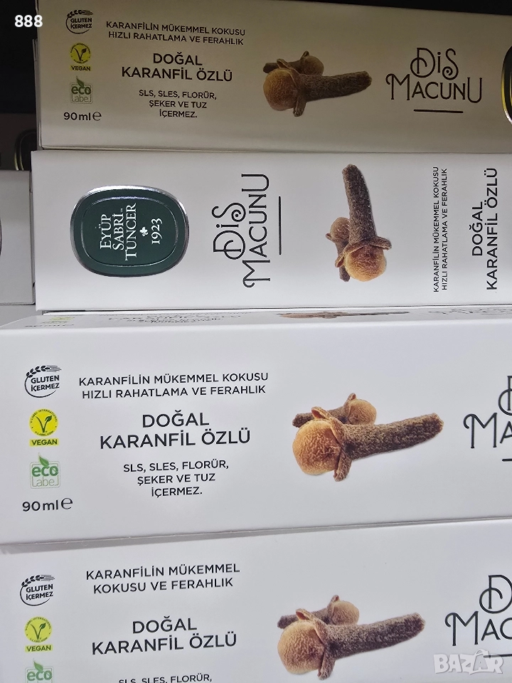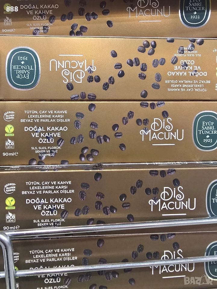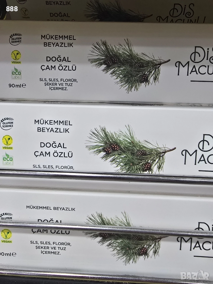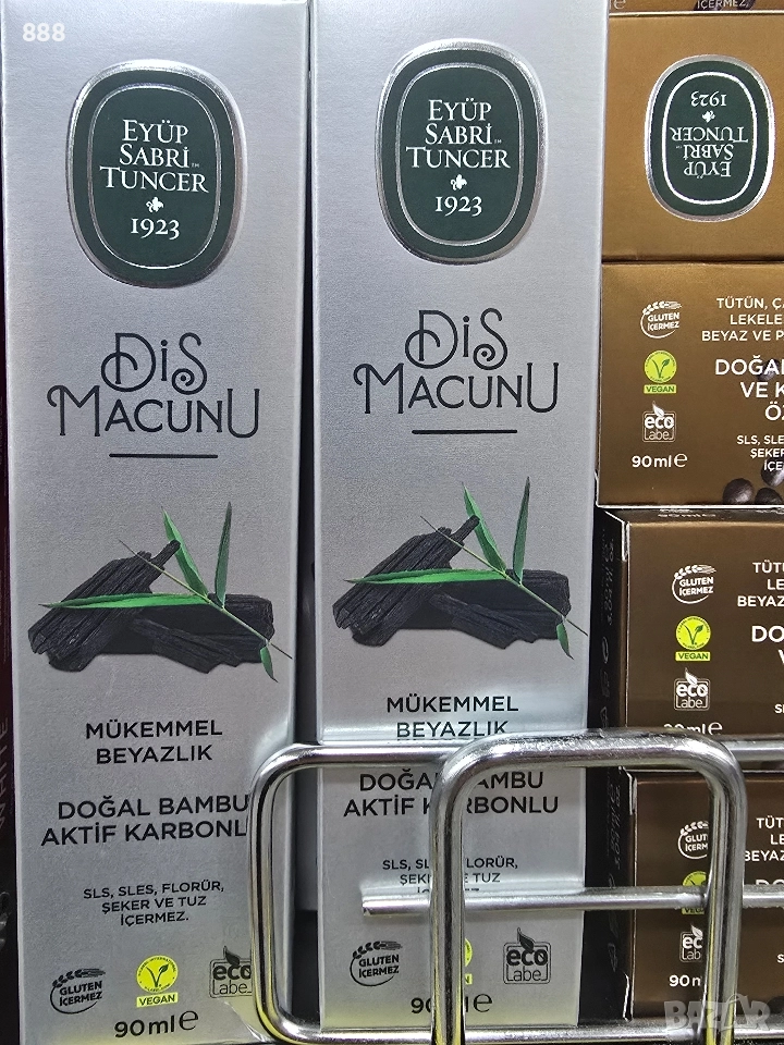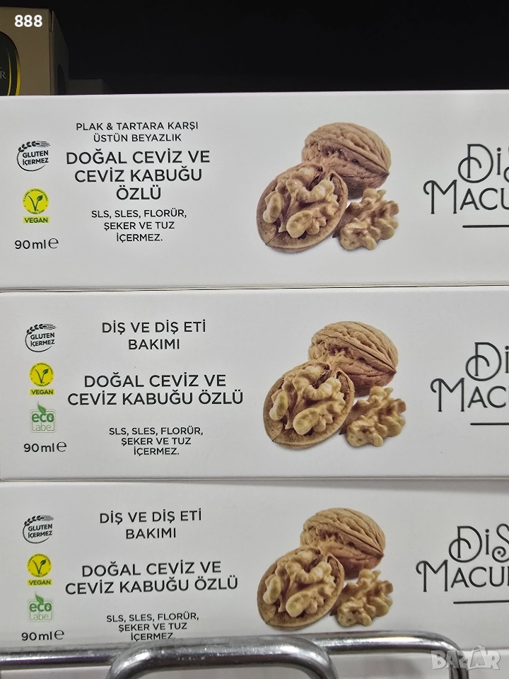 90 мл с екстракт от орех , бамбуков активен въглен , с кафе и какао , мисвак , мента , карамфил , бор , джинджифил , хималайска сол , лавандула и мащерка , детска паста от черница за чувствителни зъби 60 мл от Турция