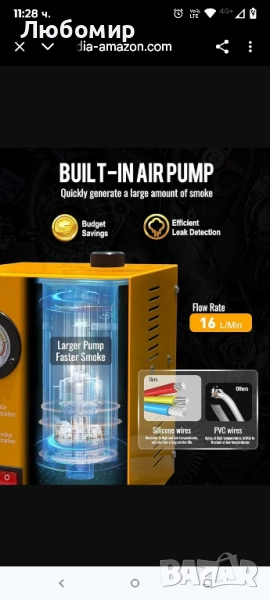 Вграден компресор и бързо генериране на дим: Няма нужда от външен компресор! Вградената въздушна помпа осигурява налягане от 19 до 23 psi, генерирайки голямо количество дим за по-малко от 10 секунди. Повишете ефективността по време на диагностиката, като същевременно намалите разходите за поддръжка.