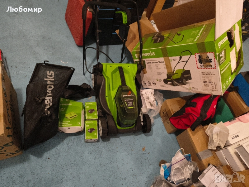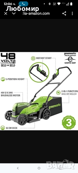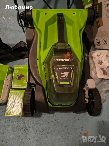 Greenworks GD24X2LM36K2x 48V безжична косачка за трева, ширина 36 см до 200 м², торба за събиране