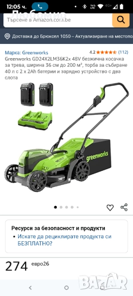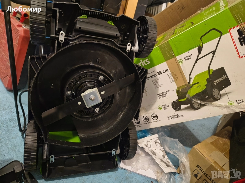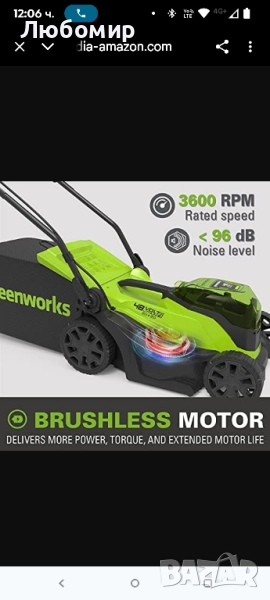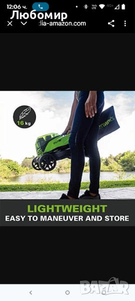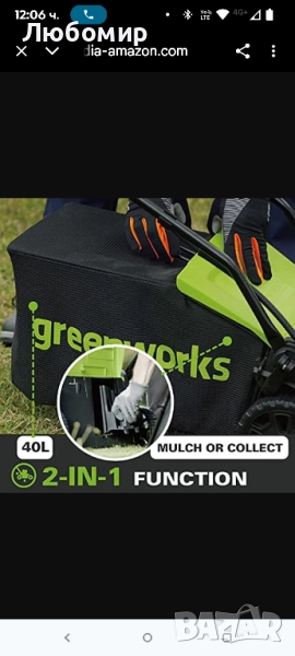 Greenworks GD24X2LM36K2x 48V безжична косачка за трева, ширина 36 см до 200 м², торба за събиране 40 л с 2 x 2Ah батерии и зарядно устройство с два слота.Лесно стартиране – поставете 24V батерия и стартирайте: с тримера можете веднага да започнете да косите без никакви кабели – включени са 2 x 2Ah батерии и зарядно устройство с два слота