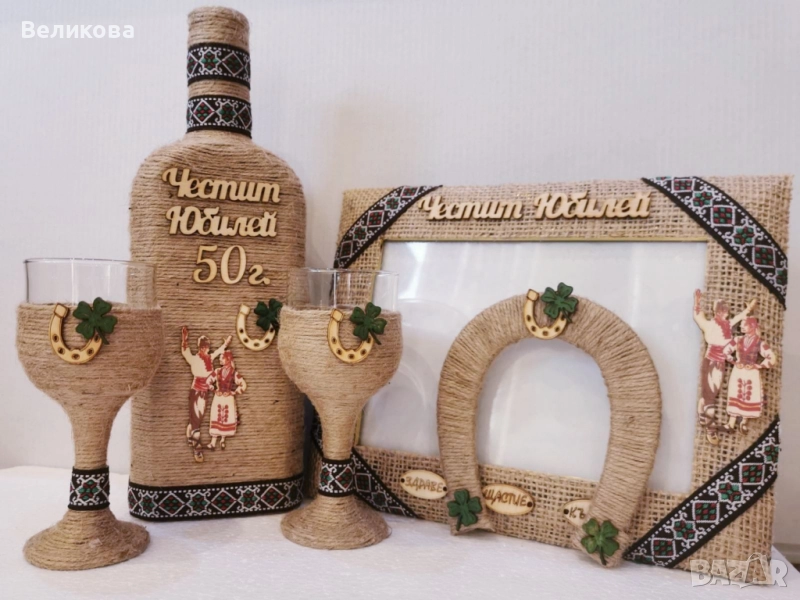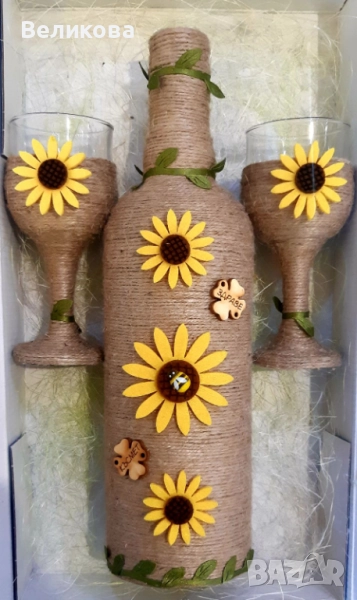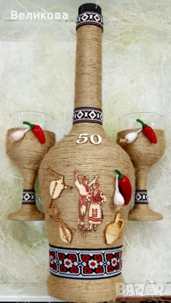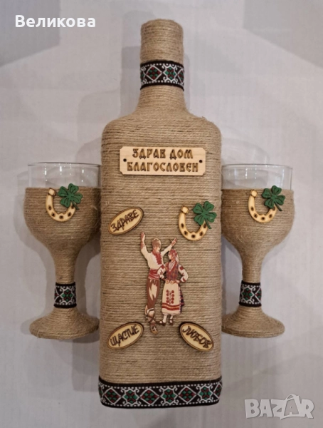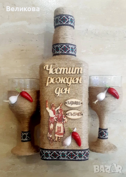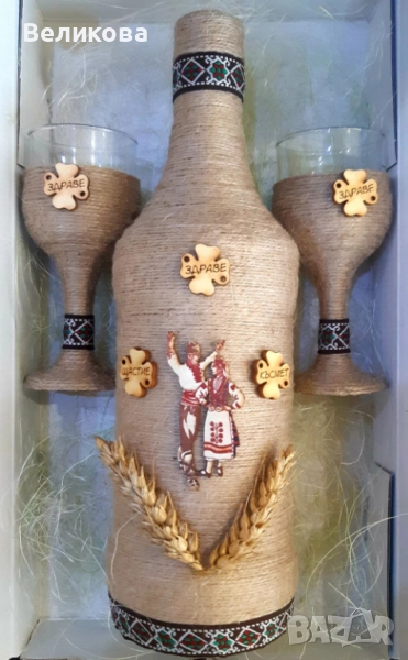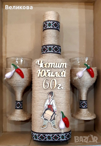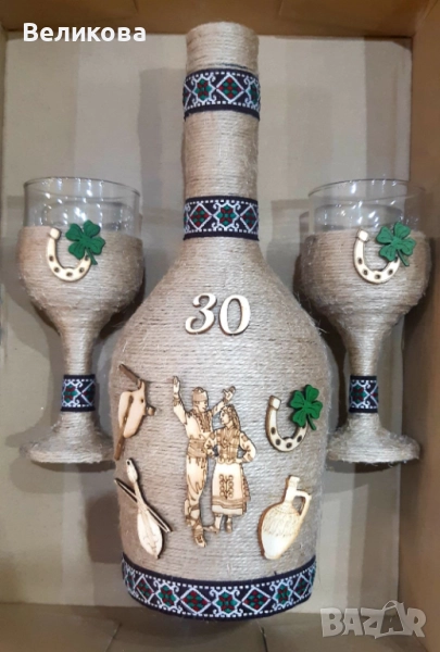 За именни и рождени дни, юбилеи, нов дом, годишнина, Коледа! Комплект от 1 бутилка с 2 чаши - 30 лв.