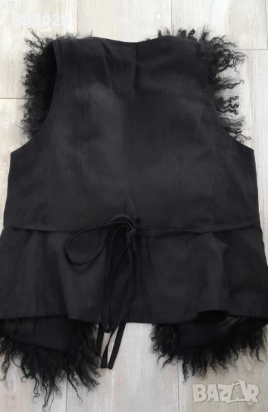 Отлично – без никакви забележки! Дължината му е 60см., от мишница до мишница – 48 см. Отзад има връзки, с които да се регулира вида на елечето.