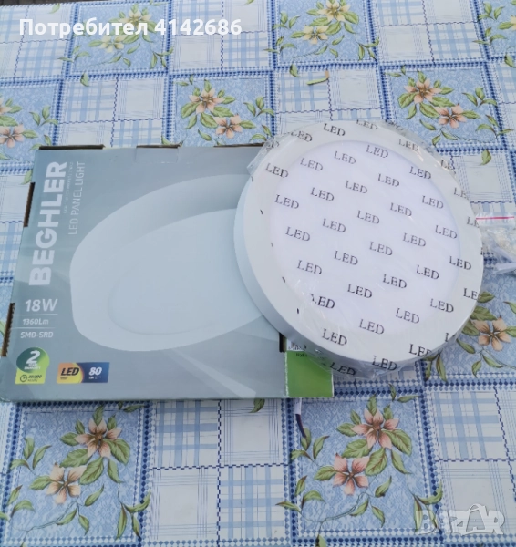 Здравейте, продавам нов LED панел BEGHLER 18 W, 1360 Lm, 4200 K, подходящ за стена или таван. Диаметъра на панела е 22 см.,цена 7,50 евро.