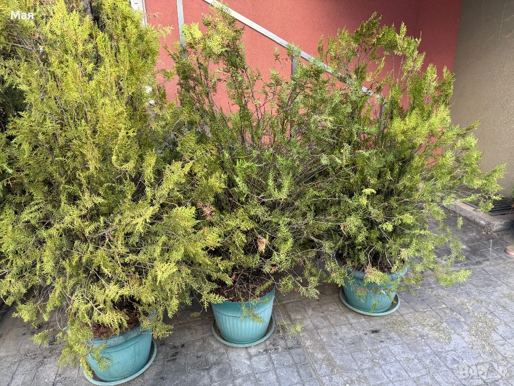 10 евро туи! Имаме 4 броя. Високи са 150 см.. → Обява 52106929