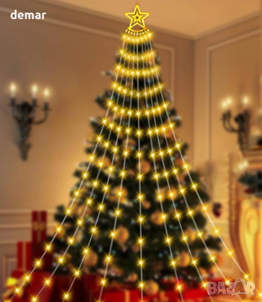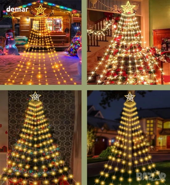 shsyue Коледна украса за елха Водопадни светлини, 3,5 метра, 350 светодиода, 8 режима, топло бяло
