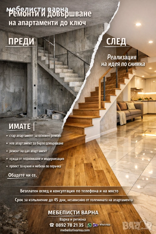 Кухни по поръчка,Цялостен основен ремонт на Къщи и Апартаменти до ключ
