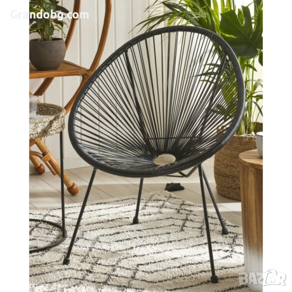 Комплектът включва две елегантни кръгли кресла и компактна масичка. Черната конструкция и геометричните линии придават изтънчен и модерен вид, който лесно се съчетава с различни стилове на обзавеждане.