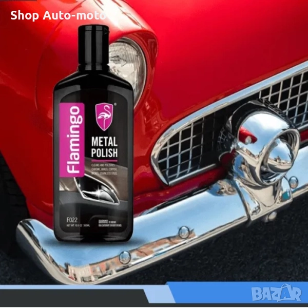 FLAMINGO Metal Polish може ефективно да почиства и полира хром, месинг, мед, никел, неръждаема стомана и други метали. Осигурява почистване, намаляване на оксидацията и защита на металните повърхности, оставяйки невидим защитен слой, за да намали броя на честите почиствания и да предотврати образуването на петна. Препарата осигурява гланц и дълготрайна защита при всякакви атмосферни влияния.