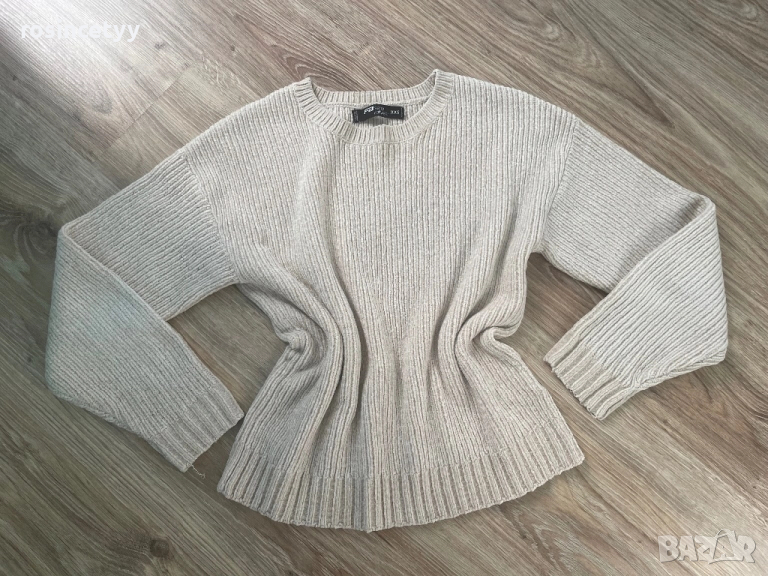Продавам бежова блуза плетиво. Размер по етикет ХХС, но става за Хс/С тъй като е овърсайз. Изпращам с Еконт