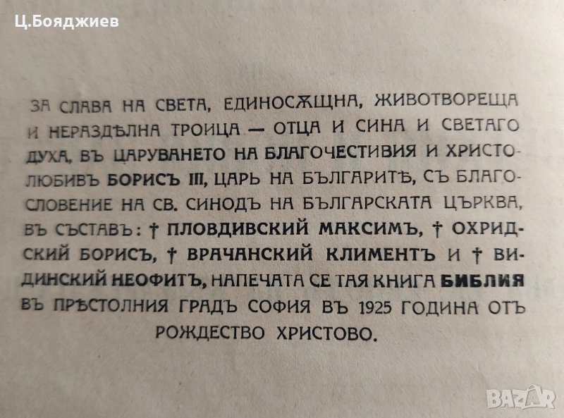 Стара Православна Библия, 1925 г. → Обява 52108100