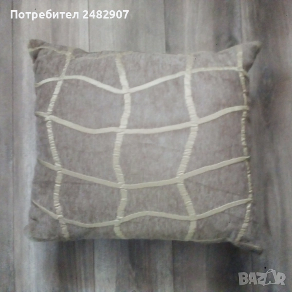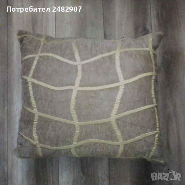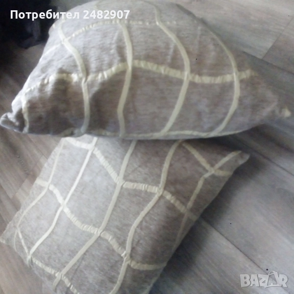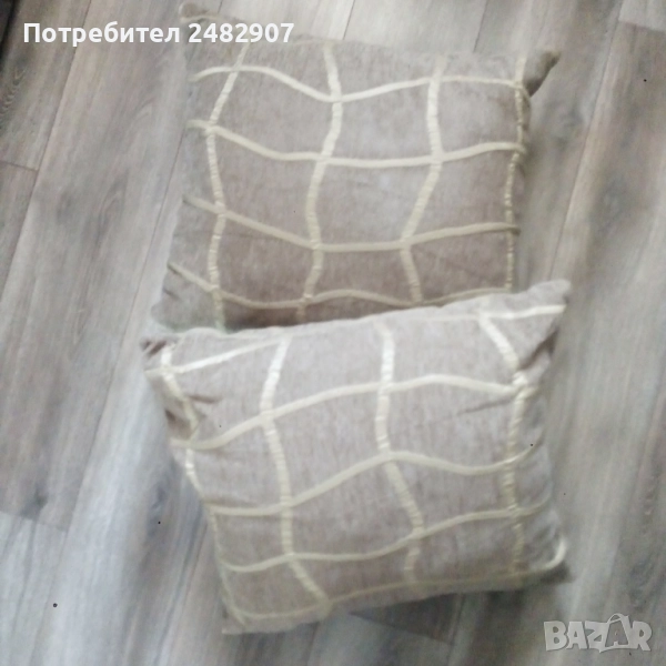 Комплект от два броя декоративни възглавници от плътна здрава материя, тип дамаска в бежово и златисто. Размери - 48/54 см, дебелина - около 20 см. Цената е за комплекта от 2 броя, цена за 1 брой - 30 лв. Чисто нови, не са използвани, подходящи за декорация.