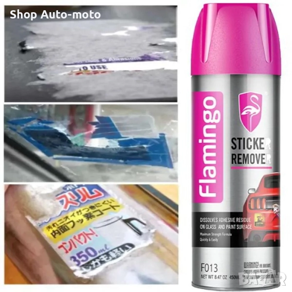 Специалната формула на продукта разтваря и отстранява лепилото бързо и безопасно, без да уврежда боята, стъклата или пластмасовите елементи на автомобила.