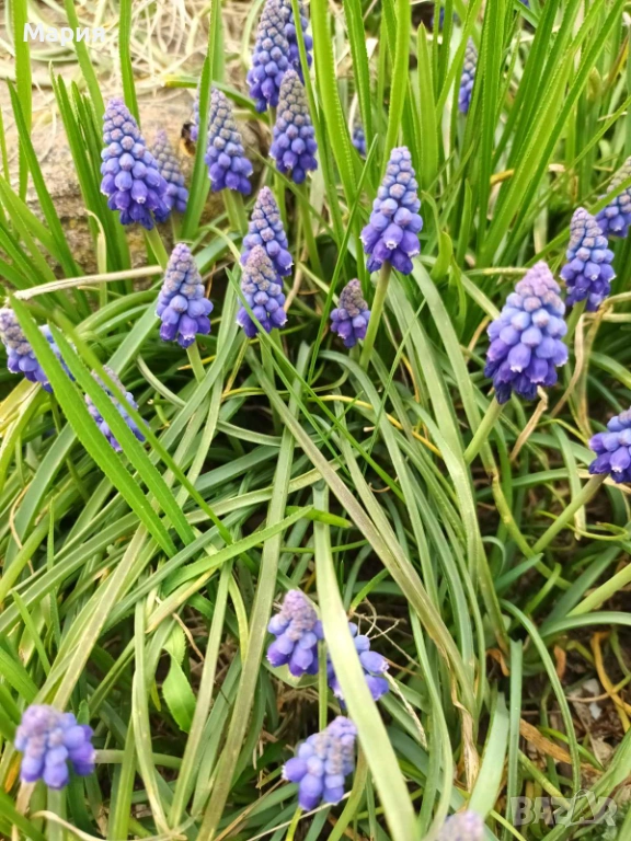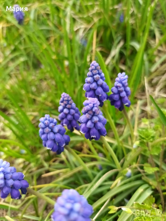 Мускари / Кукувиче грозде.Цената за една туфа с около 30-50 луковици е 4 евро.Подходящо е за края на лехи и бордюри и в алпинеумите. В много градини се среща и между по-високите луковични растения като лалета и нарциси - цъфти по същото време. често се съчетава в тревни поляни и алеи. Може да се отглежда както в градината, така и в сандъче или саксия на балкона.