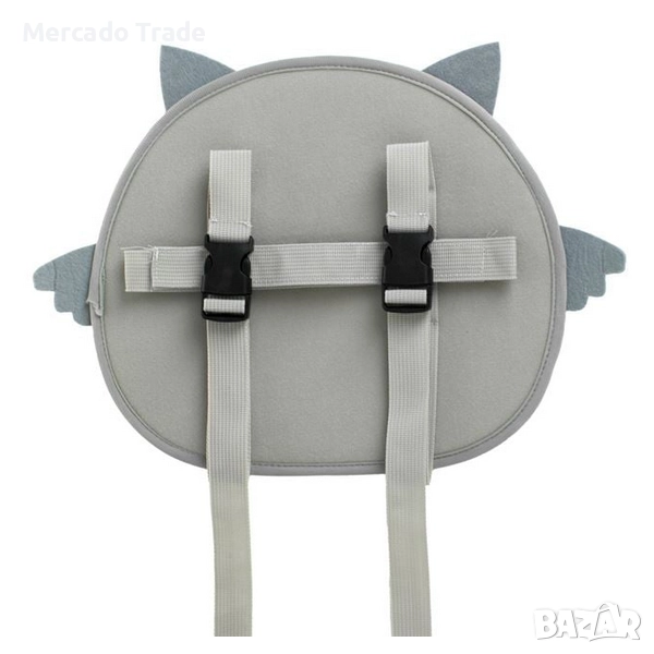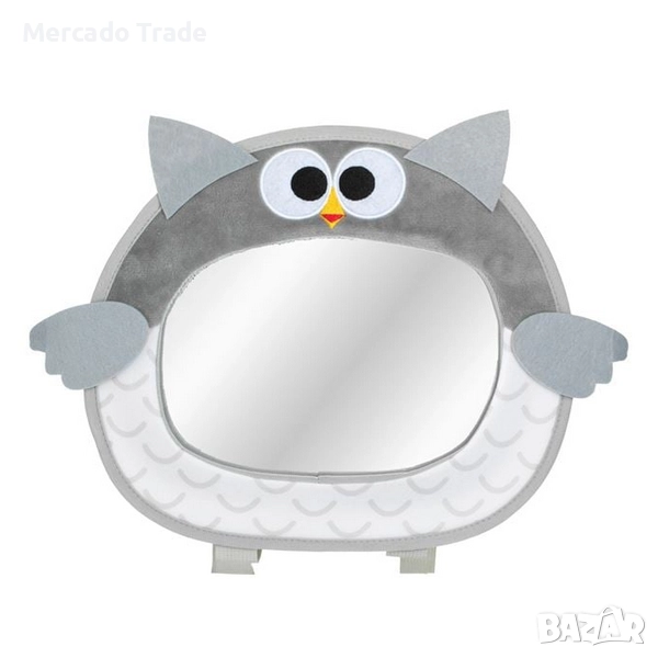 Огледало за кола (със стъклена част 21x15см) в сиво-бял цвят с дизайн на бухал. Лесно се монтира на облегалката за глава на задната седалка, за да виждате бебето в детското столче, обърнато в обратната посока. Фиксира се с ремъци, които регулирате до необходимата дължина, за да виждате детето през огледалото на водача.