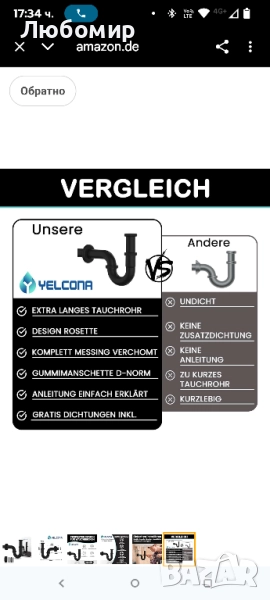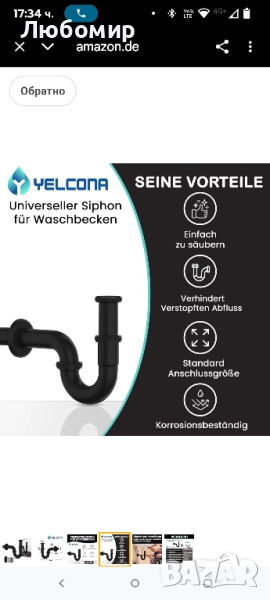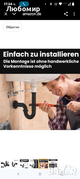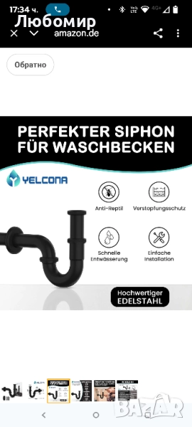 Лесен за монтаж: масивният сифон се доставя като комплект, включително стенна розетка, и може да се монтира без предварителни познания за монтажа.