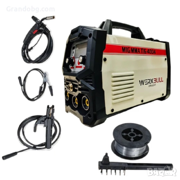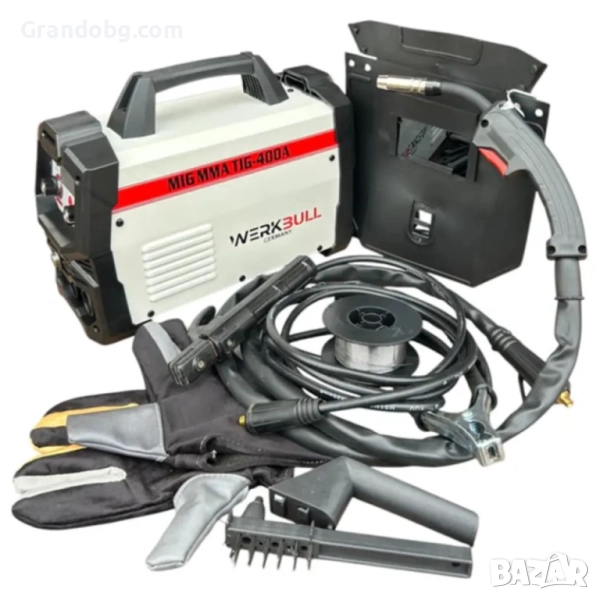 Апаратът е комбиниран с електрожен заваряващ добре с електроди до 5мм. Заваряват всички черни метали, неръждавейка, чугун, бронз и месинг.Максимална мощност на заваряване 400 Ампера.