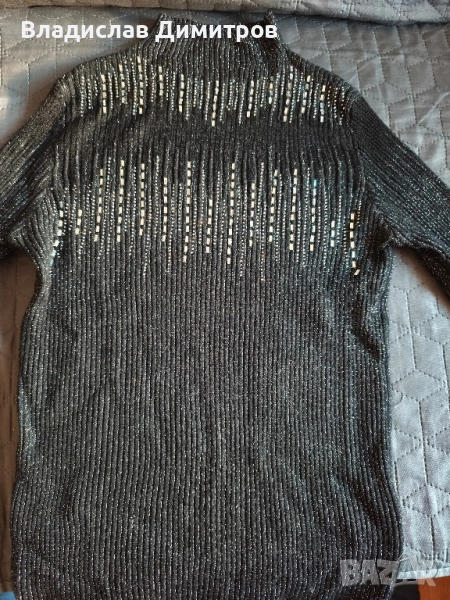 Дамска блуза в черен цвят с камъни. Стилен допълнителен акцент за вашия тоалет. Изключително мека и топла. Размер L/XL. Гръдна обиколка 70. Дължина 54см. Дължина на ръкава 56см.
