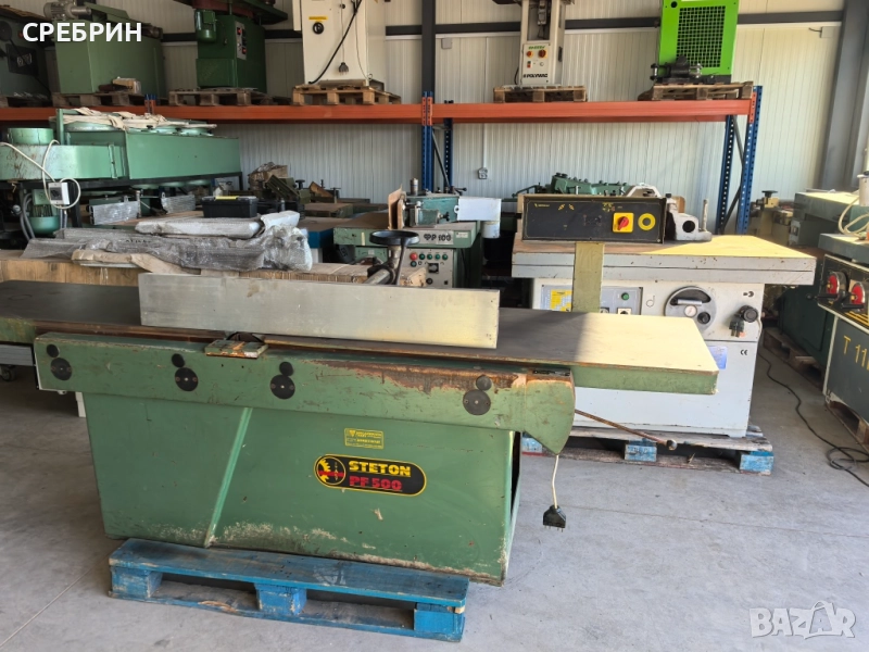 В наличност гръцки абрихт щрайхмус с бор апарат, копие на италианската марка CASADEI. Характеристики - широчина 400мм., три ножа на вала, височина на щрайхмуса 200мм., дължина на плотовете 2000 мм., плаващ линеал на ляво и дясно + наклон на абрихта, спомагащи пружини за лесно вдигане на плотовете при работа с щрайхмуса. Две скорости на подаване на щрайхмуса 7 и 14 метра в минута. Масивен бор апарат със специален патроник за инструменти от ф 3мм. до 20мм. Много важна част на щраихмуса, който е с две скорости минаващи през редуктурна кутия. От там идва силата на дърпане за без проблемно каране на сухи и мокри греди и ребра. Машината няма нищо общо с нашите български комбинирани машини. Налични на склад три броя + други над 130 машини. За повече информация по телефона. Фирма С-М е с нов постоянен адрес на два километра от Казанлък - на 400 метра от главния път за село Черганово, срещу фабрика за дървени къщи ECOZID.