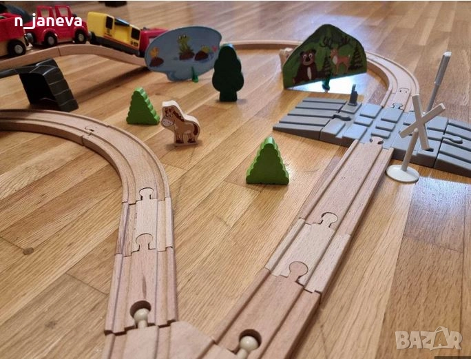 Комплект влакчета с дървени релси и аксесоари, детски влакчета, 3+ години