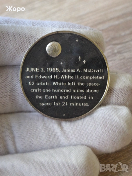 Монета (плакет) "3 юни 1965 година - Първият Американец стъпил на луната - Джемини 4" в отлично състояние.