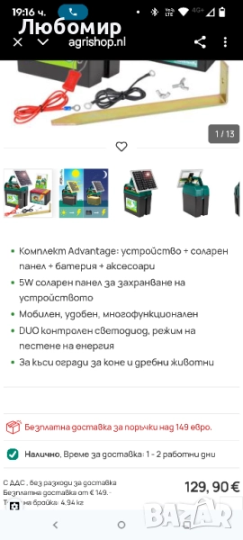 В допълнение към енергизатора и батерията, доставката включва заземителен кол, подходящи свързващи кабели и предупредителен знак, така че енергизаторът може да бъде пуснат в експлоатация веднага, без да се купуват допълнителни аксесоари