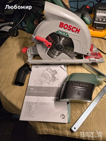 без оригиналната опаковка.С универсалния ръчен циркуляр PKS 55 A на Bosch, всяко рязане е под ваш контрол. Циркулярът Bosch е особено лек и компактен. Благодарение на ергономичния си дизайн и удобната мека ръкохватка, той пасва идеално в ръката ви. Той предлага и най-добрите технологии по отношение на лекота на използване и функции за безопасност. А за да се гарантира, че нищо не разваля удоволствието от рязането, кутията Clean System Box събира и дървените стърготини.