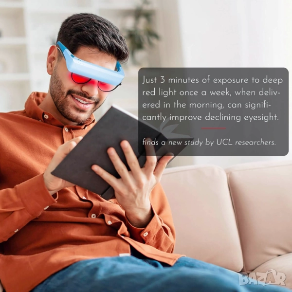 Очила с червена + синя светлина терапия, които съчетават лечебният ефект на червена светлина (670 nm) и нежната сила на синя светлина без UV (480 nm) за цялостна подкрепа на очите и здравето.