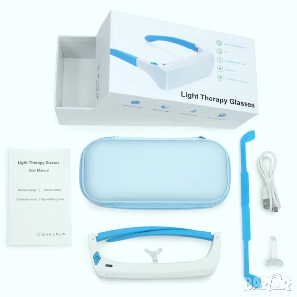 Тези очила излъчват безвредна синя светлина в диапазона от 470-480 nm, което е естествено и подходящо за справяне с нарушения на съня, липса на енергия, нощни смени, извънреден труд, зимена депресия. Изследванията показват, че 200 лукса синя светлина може да има терапевтичен ефект, подобен на този от 10 000 лукса бяла слънчева светлина.
