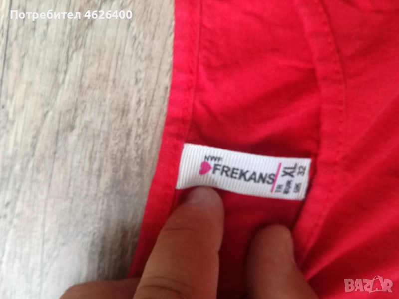 Тениската е в перфектно състояние,размер-XL,а размери взети от мен са:дълж.-61см.,шир.от рамо до рамо-38см.