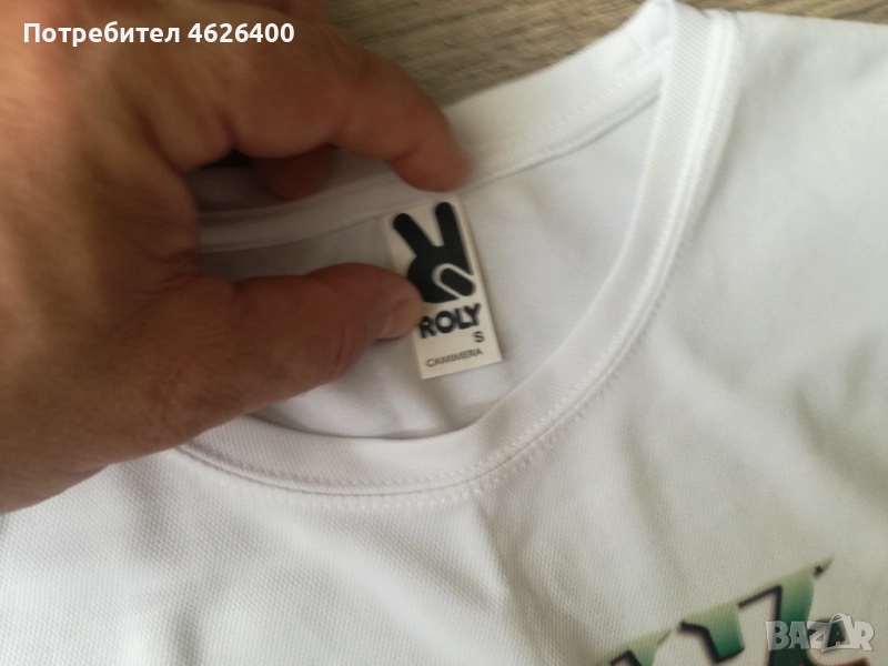 Тениската е нова с надпис,подходящ за имени дни.Размер по етикет-S,а размери взети от мен са- дълж.-66см.,шир.от рамо до рамо-41см.