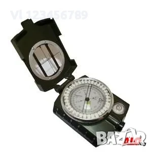 Високо качествен призматичен компас с отвор за монтаж на статив, и нивелир (въздушно мехурче в капка ), микрометрично отчитане, лупа и т.н.