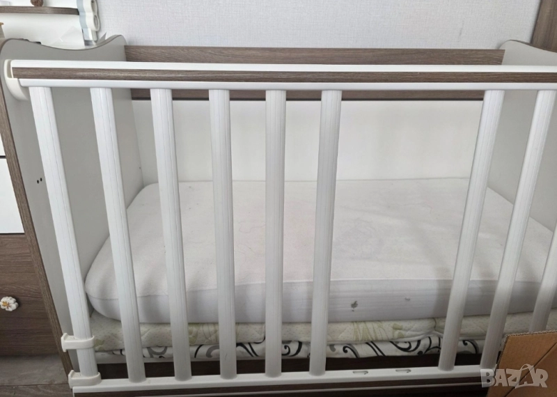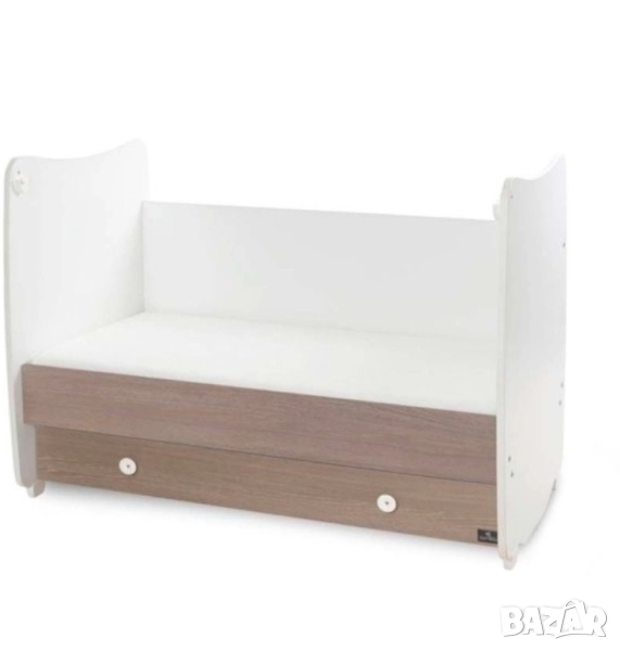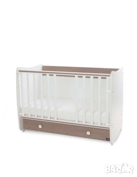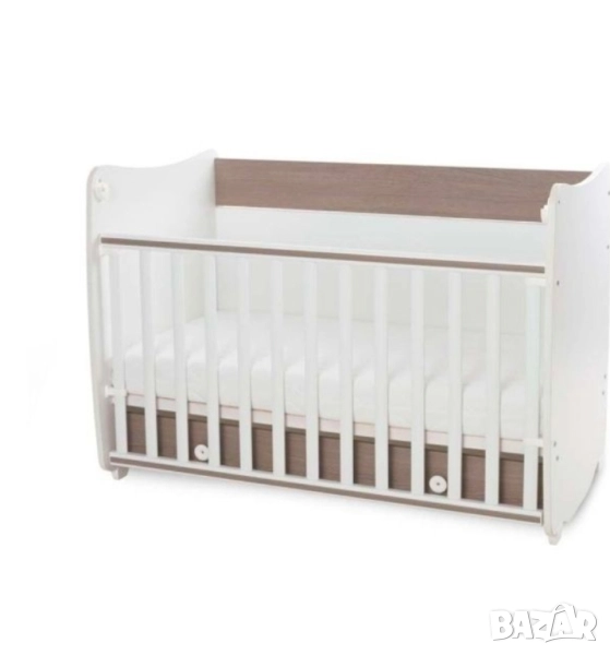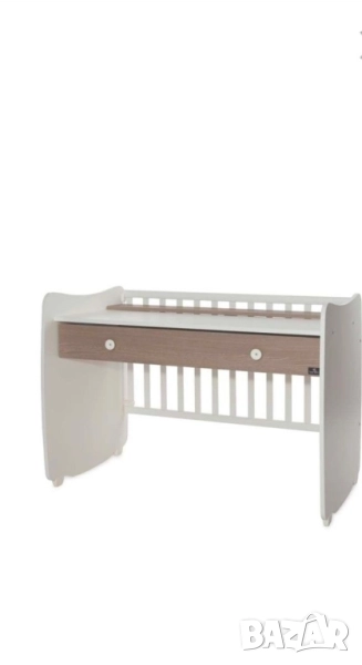 DREAM NEW ЛЕГЛО-ЛЮЛКА 60X1 2DREAM NEW бебешко БЯЛО/STRING LORELLI 2бр матраци на стойност 200 лв, Незначителни, следи от употреба. DREAM NEW бебешко легло-люлка от 18 мм ламинирано бяло ПДЧ, за матрак 60/120 см, с функция за трансформиране в бюро. Красиво и функционално легло в универсален стил. Имате възможност за фиксиране на основата на две нива - при новородено бебе в горната част, за удобство при преобличане и смяна на пелени, а при по-голямо детенце - ниско долу, за предпазване и защита от нараняване. Решетката е подвижна, също с две нива на позициониране, с функция за застопоряване в горно положение. Дизайнерите са проектирали умело съчетаване и трансформиране с висококачествена конструкция, лесен и бърз монтаж - от легло в люлка, от легло в кошарка, от кошарка в бюро... Поставяте в детската стая една мебел, а получавате няколко! Голямото чекмедже в долната част идва като бонус към общата функционалност, с възможност за съхранение на дрешки, одеяла, играчки. Основни характеристики: * Две нива на подматрачната рамка * Асансьорна решетка с две нива * Трансформация в различни конфигурации: бебешко легло, люлка, кошара,