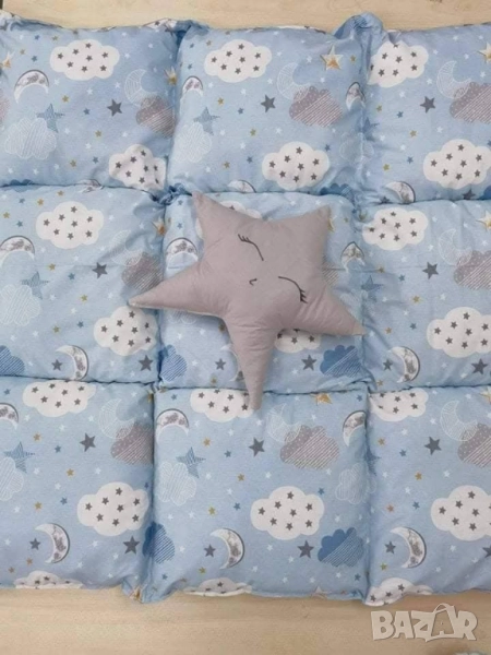 Пухкаво килимче - Пълнеж силиконови топчета Размер 110/110 см ,височина 8/10 см - Цена 52лв Размер 110/200 см, височина 8/10 см - Цена 79 лв Допълнителен комплект възглавнички -две облачета и една звездичка цена 39 лв