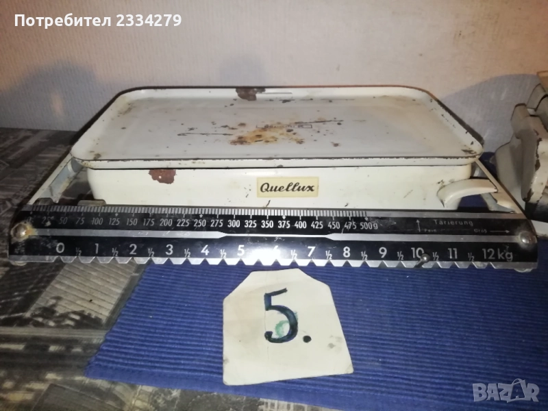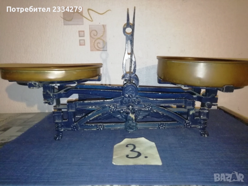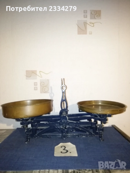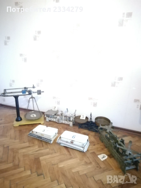 стар кантар използван в магазини и други търговски обекти, тегли до 5кг., цена 45лв.; N:3 стар немски кантар ,,MARS" изработка от 30-40години със емблема на орел много орнаменти, цена 70лв. N:4 стара българска везна кантар 60-70години, цена 20лв.; N:5-6, стари немски медицински кантар болници, аптеки, химични лабораторни и други, цена за 17лв.