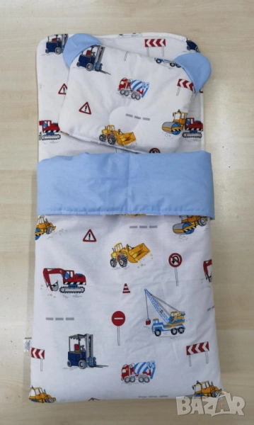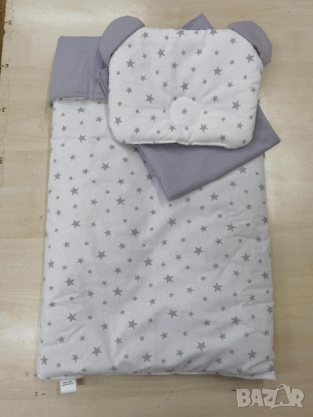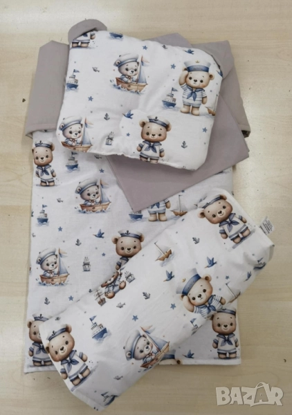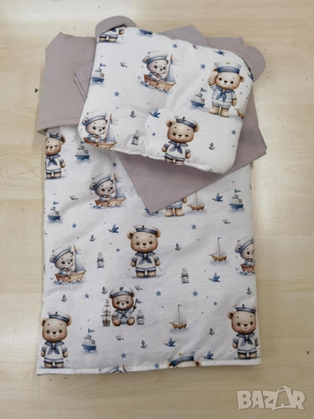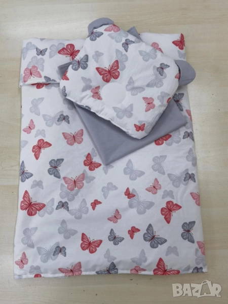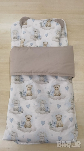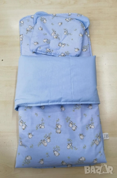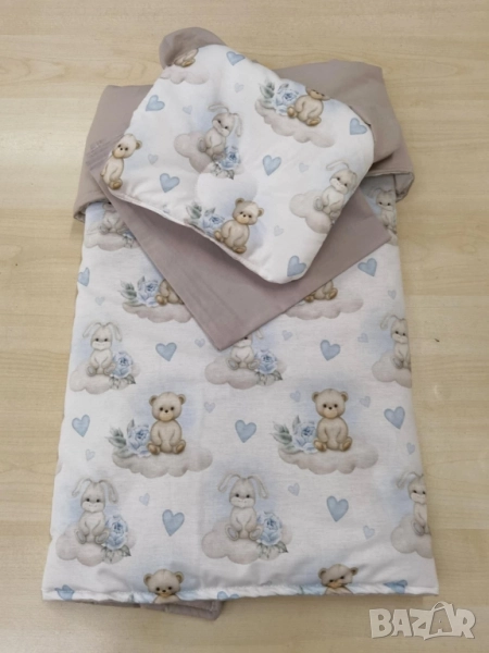 Комплект за количка * Непромокаема подложка 36х75 см * Завивка с вата 80х80 см * Възглавничка Цена 51 лв Комплект за количка 100% памук ранфорс 1.Летен вариант Долен чаршаф 60/90 см Пелена 80/80 см Възглавничка мече 22/30 см Цена 34 лв 2. Пролетен вариант Долен чаршаф 60/90 см Пелена с лека вата 80/80 см Възглавничка мече 22/30 см Цена 41 лв 3.Термо комплект за количка Завивка 80х80 1 лице ранфорс, вата в средата 100гр, полар отдолу Долен чаршаф 60х90 Възглавничка Цена 45 лв 4. Есенно - зимен комплект за количка с одеяло Одеяло 80х80 с полар Долен чаршаф 60х90 Възглавничка Цена 43 лв