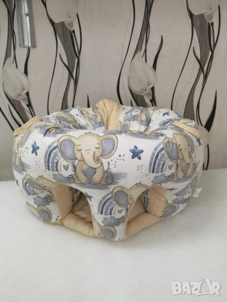 Барбарон Диаметър 40 см Височина 26 см, височина отзад 28 см Материя 100 % памук ранфорс Пълнежът е отпред силиконови топчета,отстрани и на гърба мелен дунапрен,дъното силиконова вата Цена 47 лв
