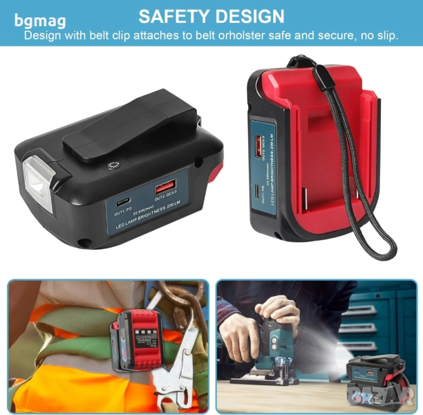 - Щипка за колан - Този двоен USB адаптер за зарядно за Bosch има дизайн с щипка за колан, който може да се прикрепи към колан, което е по-безопасно и сигурно, приляга добре и здраво, без хлъзгане. На гърба има и отвор за адаптер за подсилване на въжето.