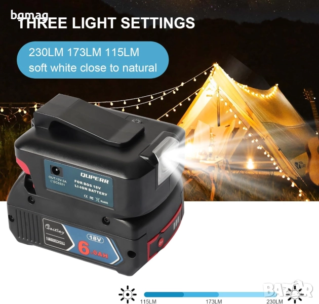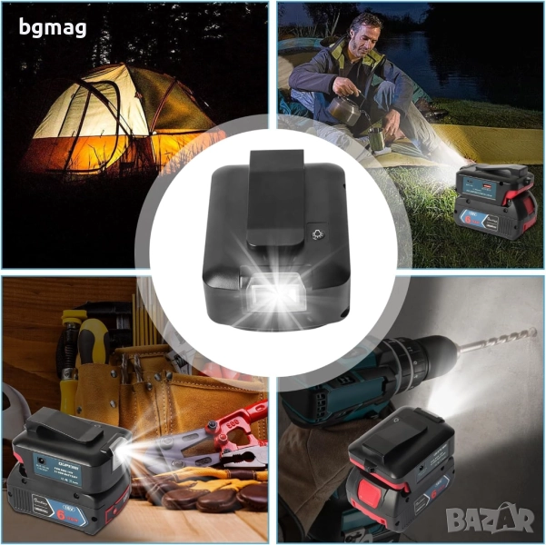 QUPERR-GAA_18V-48 източник на захранване адаптер за батерии, преобразувател на работна светлина за Bosch Professional 18V (GBA) LXT Li-ion батерии с 2 бр. USB интерфейс за зарядно устройство за телефон, с LED фенерче с DC порт (само адаптер)