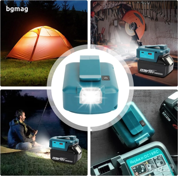 QUPERR-Adp05 източник на захранване Адаптер за батерии, преобразувател на работна светлина за Makita 14,4 V и 18 V батерии с 2 бр. USB интерфейс за зарядно устройство за телефон, с LED фенерче с DC порт (само адаптер)