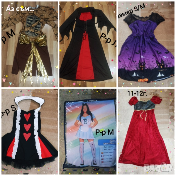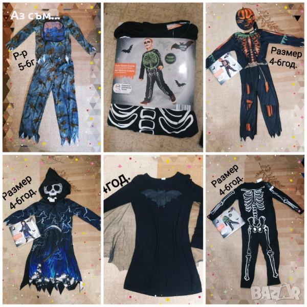 Хелоуин костюми нови, ползвани или обличани за фото сесия,от 3м до Л/М размер, подходящи за момиче или момче,цените са в зависимост от състоянието от 5лв до 30лв, качвам само част от тях ,при интерес на лично . Възможен е коментар по цената за повече броя