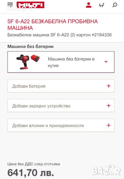 Продавам мощен винтоверт на Хилти в отлично визуално състояние и работи перфектно без никакви забележки, внос от Франция. Обявената цена е за само бодито с ръкохватка, без батерии и зарядно, при желание на клиента може да се окомплектова с 2 батерии по 5.2Ah и зарядно за 750лв. Пращаме с опция преглед и тест с куриерска фирма еконт може и лично предаване за гр. Шумен.