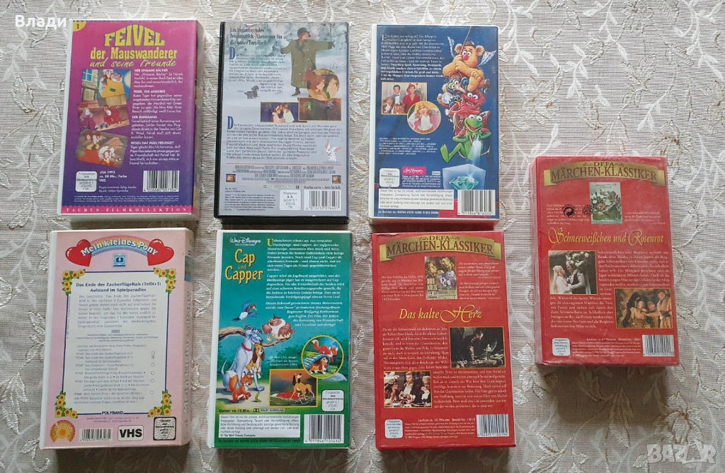Продавам VHS видеокасети оригинални детски анимации озвучени на немски език. Студийни записи, касетите са запазени и съхранявани много добре минимални следи от употреба. Цена за брой 2
